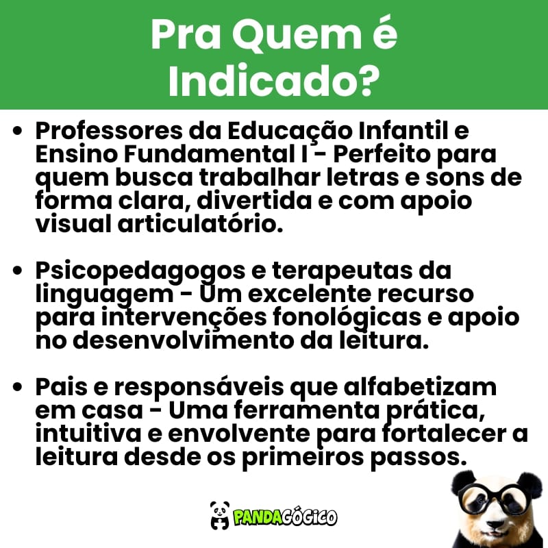 Para pais e responsáveis que acompanham o aprendizado das letras em casa e querem um material prático e efetivo para reforçar a leitura.