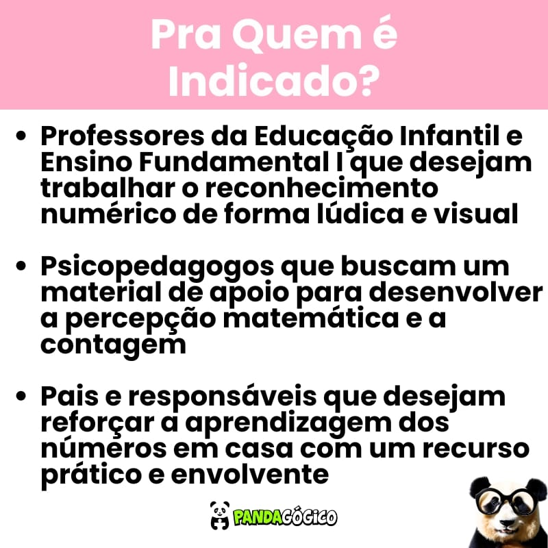 Professores da Educação Infantil e Ensino Fundamental I que desejam trabalhar o reconhecimento numérico de forma lúdica e visual;
