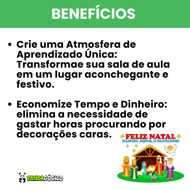 3. Crie uma Atmosfera de Aprendizado Única: O ambiente em sala de aula tem um impacto direto no aprendizado. Com nosso Painel de Natal, você pode proporcionar um espaço inspirador que estimula a criatividade e o foco dos alunos.