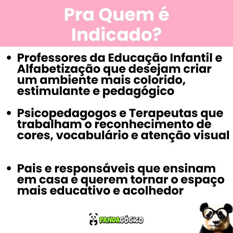 • Professores da Educação Infantil e Alfabetização que desejam criar um ambiente mais colorido, estimulante e pedagógico;